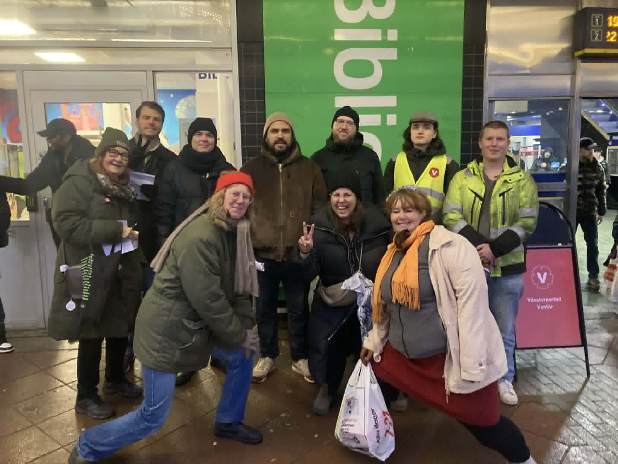 Idag var vi ett härligt gäng vänsterpartister som bjöd på kaffe och hembakta pepparkakor och delade flygblad om att prioritera människor före pengar. Det gick som väntat hem i Högdalen.