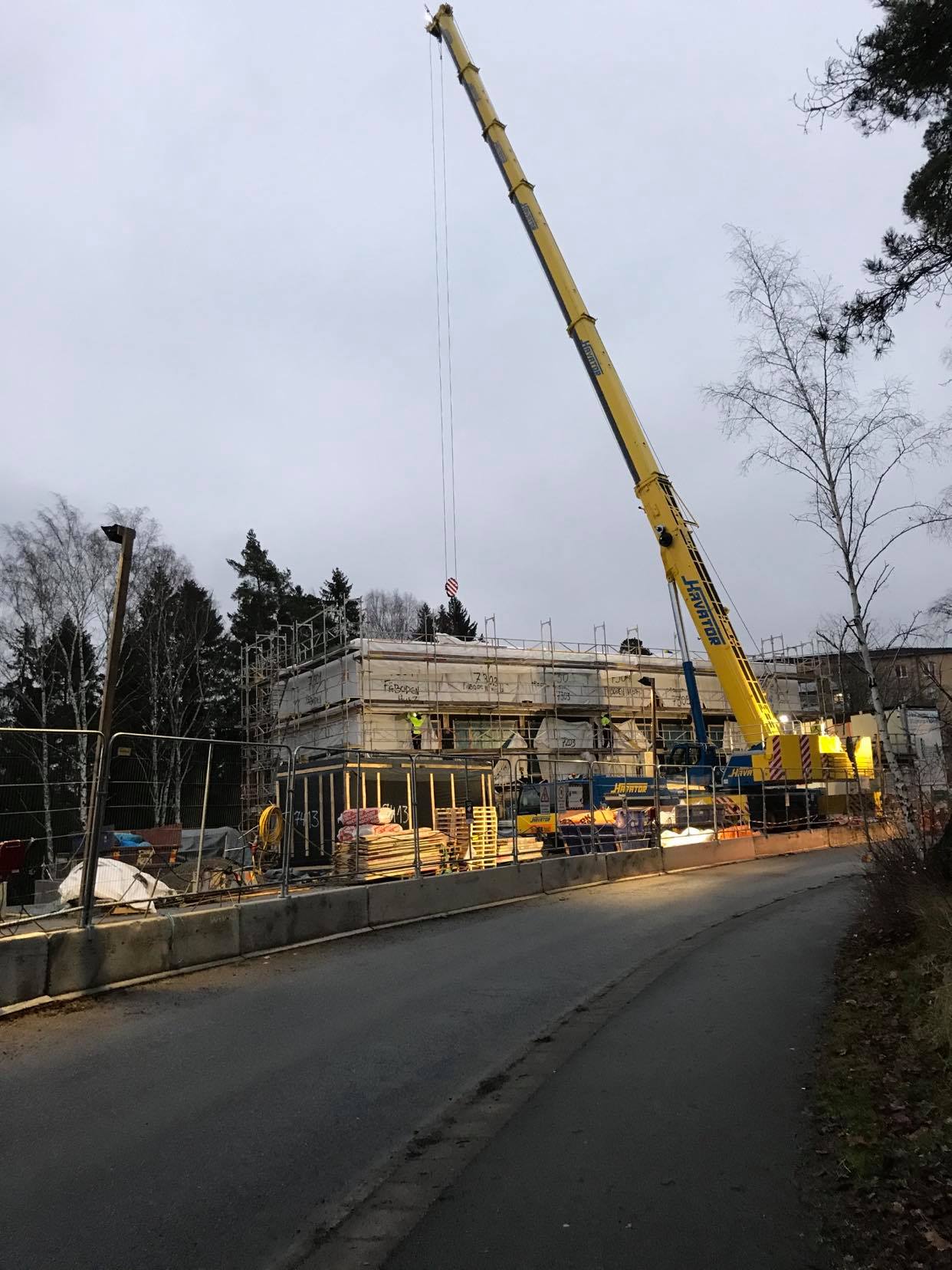 Hyresrätterna i den detaljplan som nu ska tas fram är så få som 100 inom Familjebostäder (fyra olika platser, se här) och 30 inom ett privat bolag, men inom hela etappen finns två andra projekt med sammanlagt 300 fler allmännyttiga hyresrätter i redan antagna detaljplaner – Familjebostäders Sätervallen med 180 hyresrätter som nu byggs för fullt (se foto) och Bjurbäcken (på plasen som kallas San Siro) med Stockholmshems 120 hyresrätter samt en privat aktör som ska bygga 220 bostadsrätter.