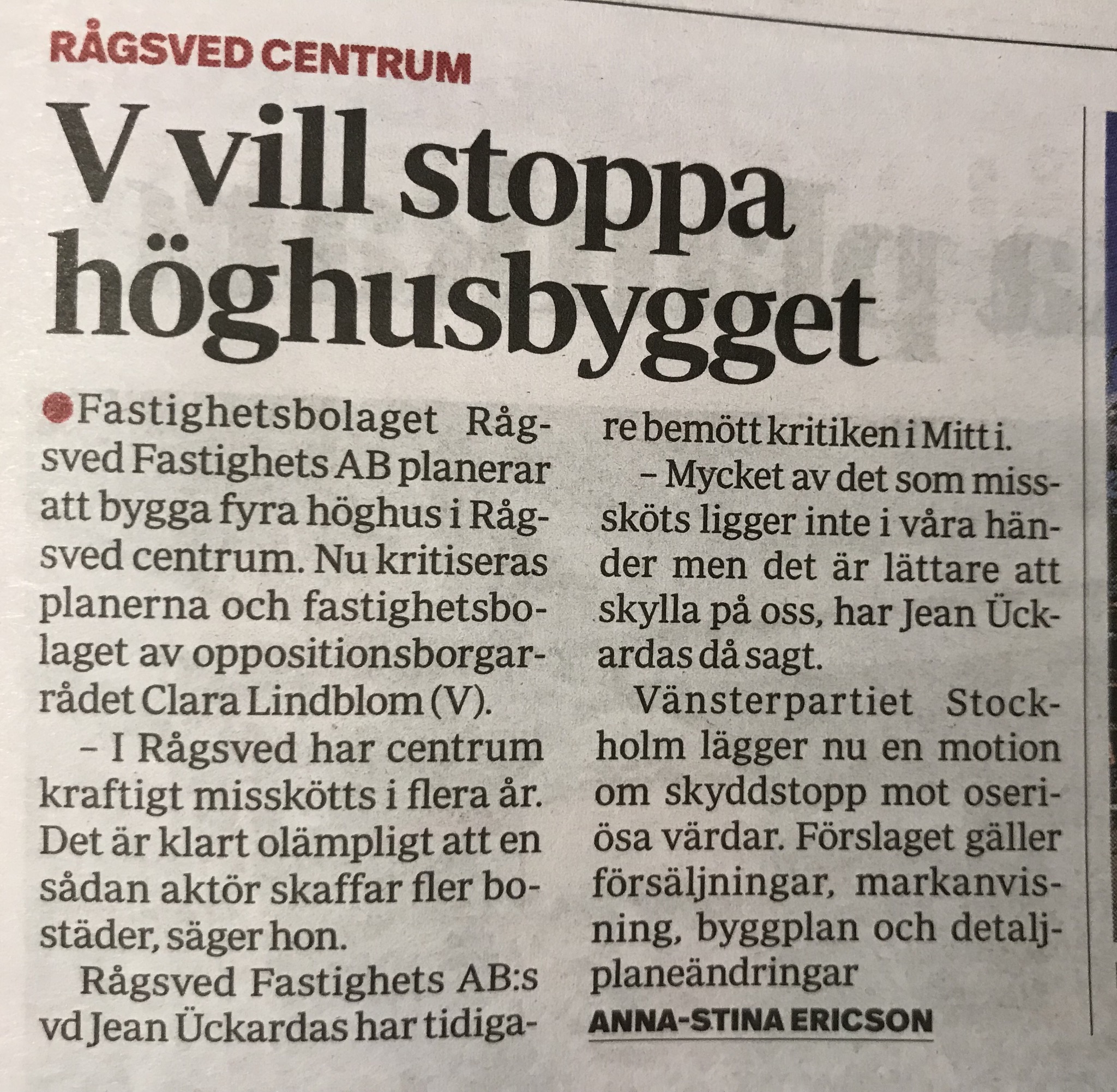 Det är nu vi ska tala om hur vi vill ha det, det är nu vi kan påverka hur vår stadsdel kommer att byggas ut och byggas så som vi vill ha den. Vi ska vara med och påverka från början! Vi Rågsvedsbor brukar veta vad vi vill, vi har också visat att vi försätter berg, när vi går tillsammans, oavsett om det gäller att rädda våra samlingslokaler, vår skog, vår trygghet eller våra hyresrätter!