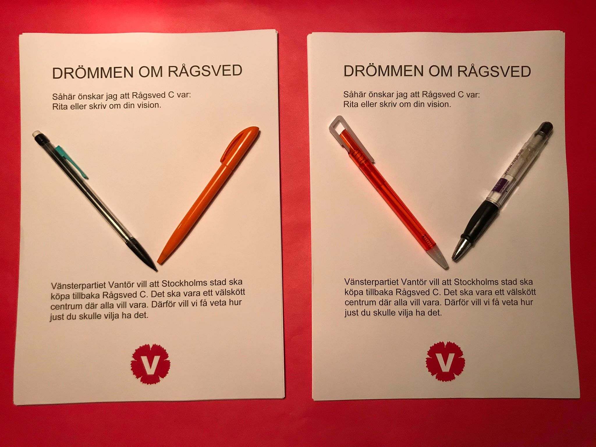 Vi är på plats från Vänsterpartiet Vantör med vårt röda tält, för att samla in tankar och åsikter om vad du och dina grannar och vänner vill ha ut av vårt centrum. Som många andra i stadsdelen är vi trötta på centrumägaren som inte bryr sig om fastigheten, hyresgästerna och oss som bor i Rågsved. Därför startar vi nu en kampanj för att stödja kravet som vänsterpartiet driver om att staden ska köpa tillbaka centrum, läs mer här.